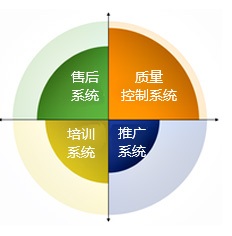 質(zhì)量控制系統(tǒng)、售后服務(wù)系統(tǒng)、應(yīng)用培訓系統(tǒng)、獨特的市場推廣系統(tǒng),讓經(jīng)銷商60天內(nèi)快速賺錢